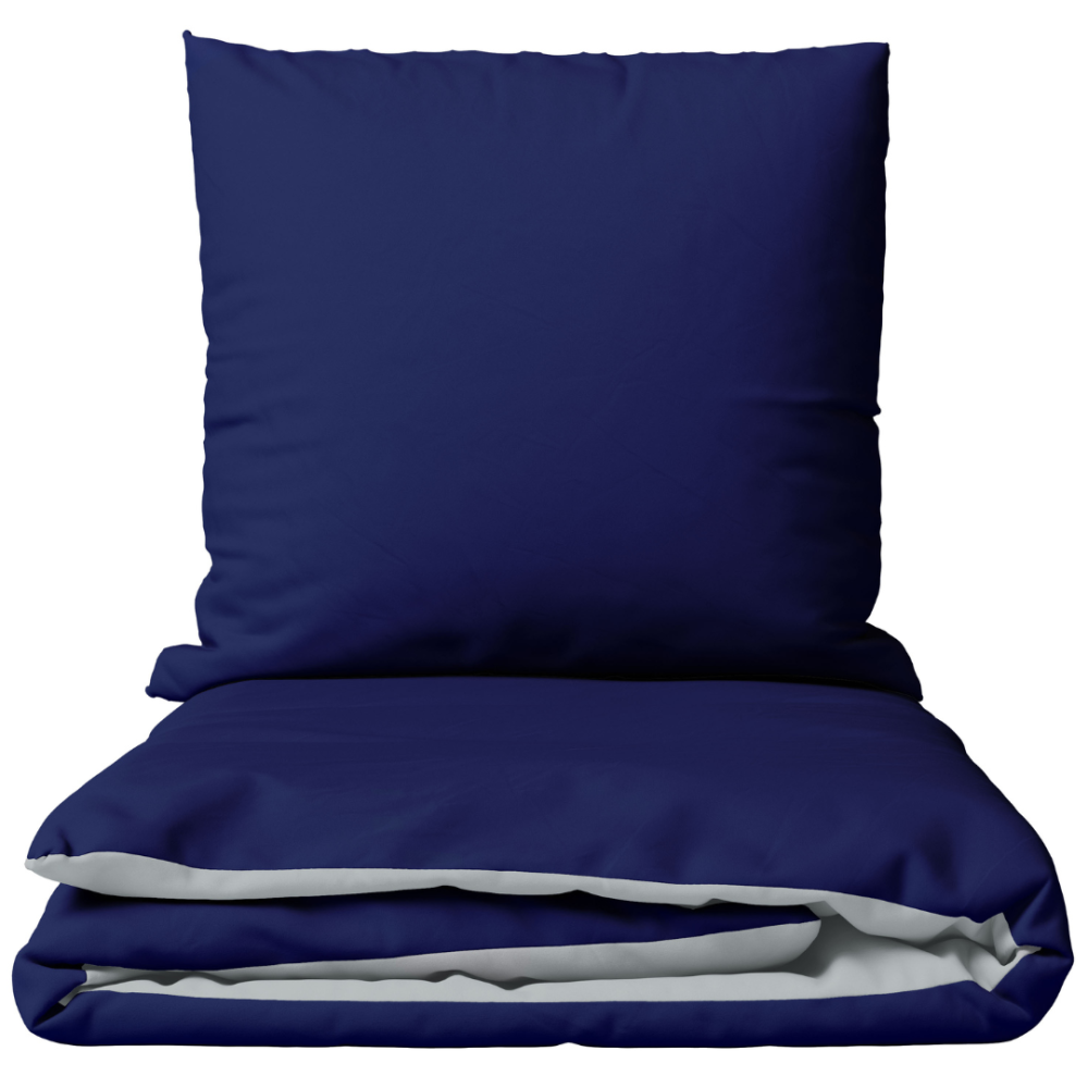 Tamsiai mėlynos spalvos minimalistinis patalynės komplektas. Šis patalynės komplektas išsiskiria sodria tamsiai mėlyna spalva ir švelniu pilku kontrastu vidinėje dalyje. Vienpalvis dizainas be raštų suteikia modernumo ir tvarkos pojūtį. Gilus mėlynas atspalvis kuria elegantišką ir ramią miegamojo atmosferą. Subtilus spalvų derinys lengvai pritaikomas tiek moderniame, tiek klasikiniame interjere.
